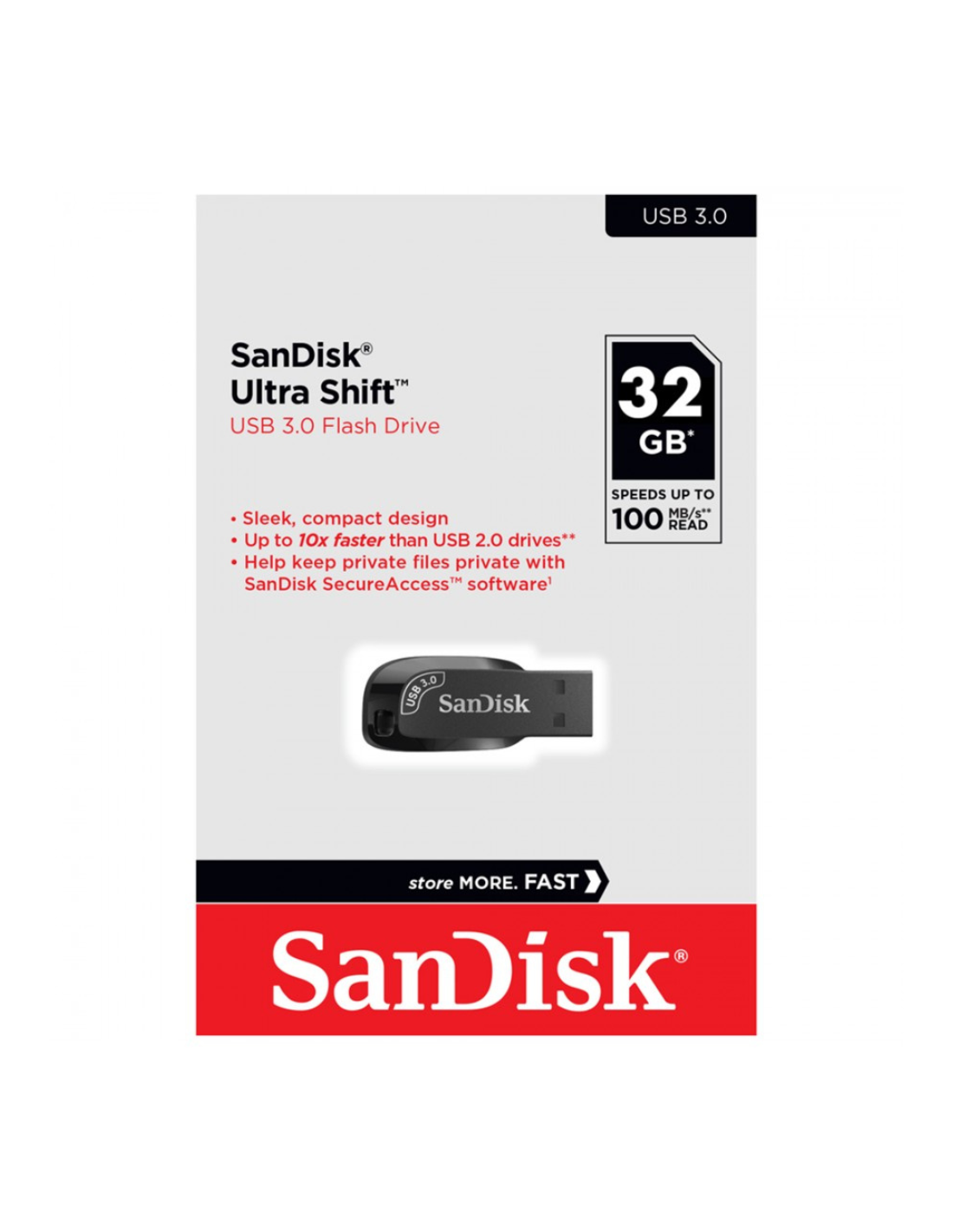 El SanDisk Ultra Shift 32 GB USB 3.0 es una unidad flash USB portátil diseñada para almacenar y transferir tus archivos de forma rápida, segura y cómoda.