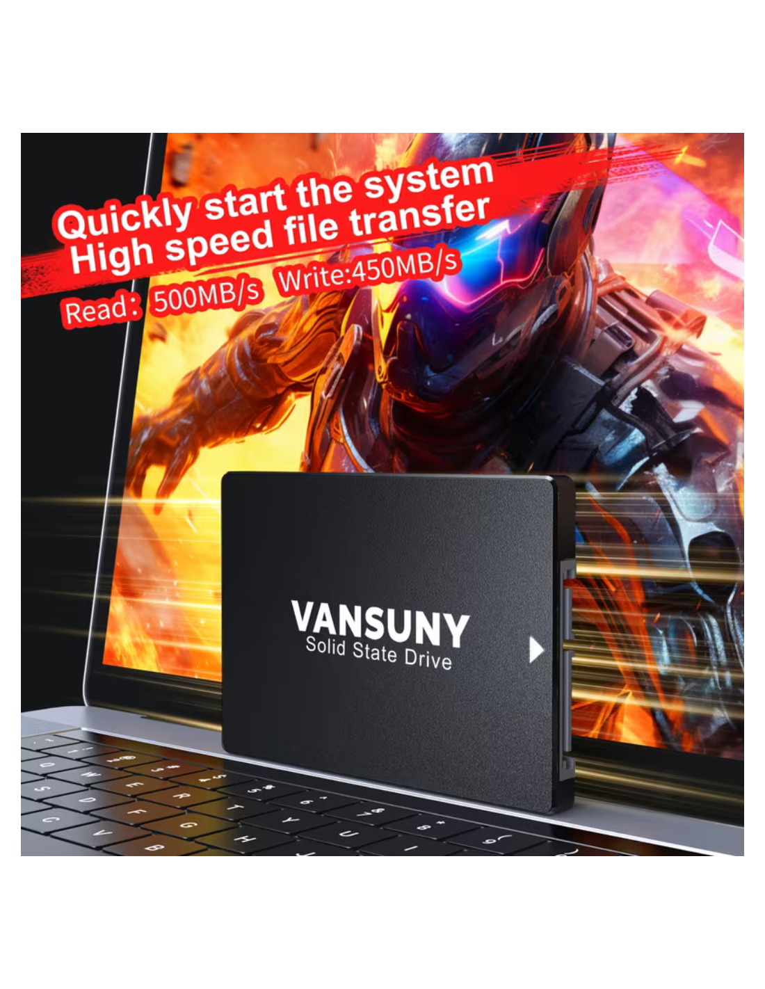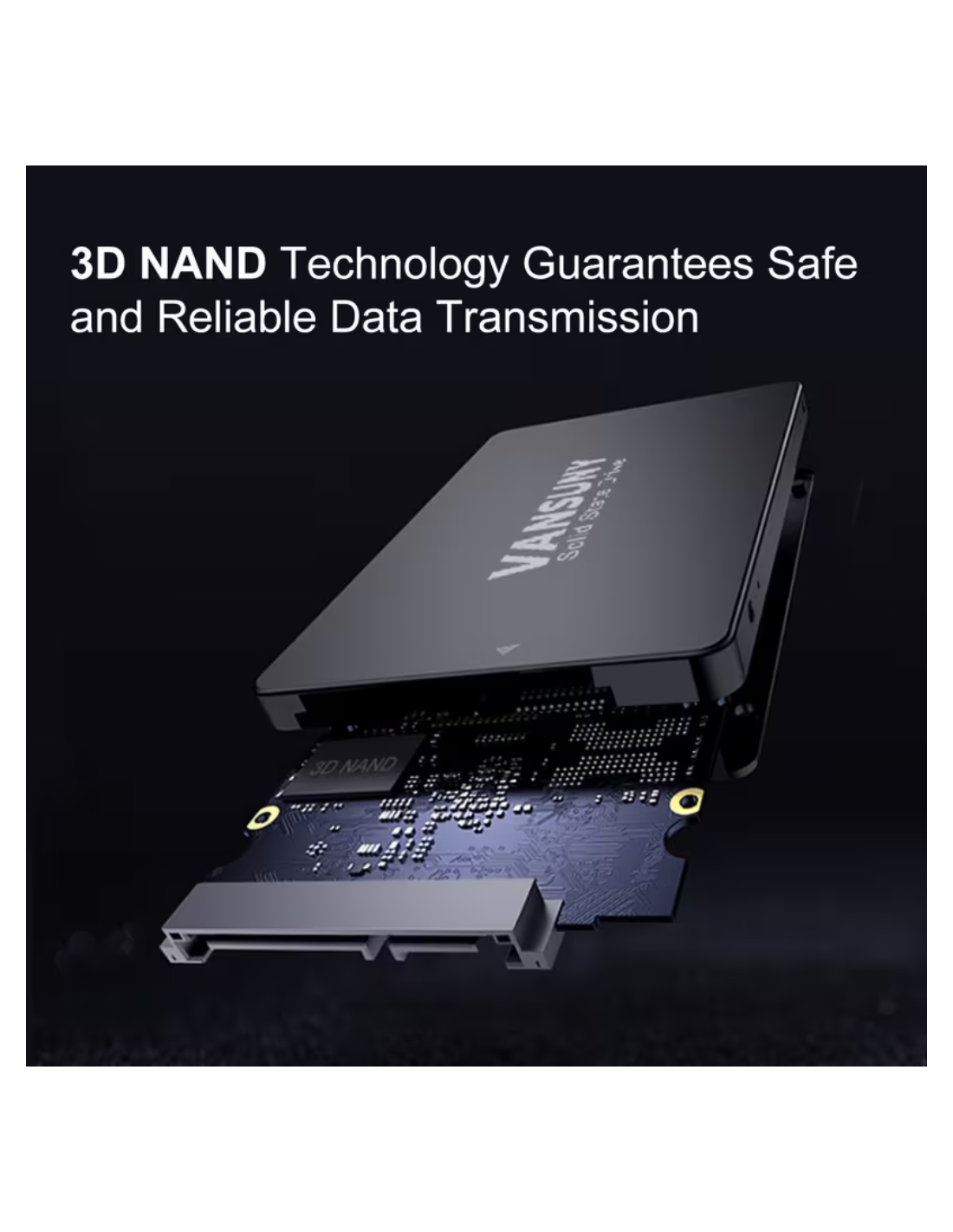 GENERICOUnidad de estado sólido VANSUNY de 128GB, diseñada para mejorar el rendimiento de computadoras y laptops con una respuesta más rápida en el encendido, apertura de programas y transferencia de archivos. Utiliza interfaz SATA III y formato 2.5 pulgadas, por lo que es una opción práctica para actualizar equipos y reemplazar discos duros tradicionales. La línea comercial del fabricante la presenta con memoria 3D NAND y velocidades de lectura de hasta 500 MB/s según versión publicada.