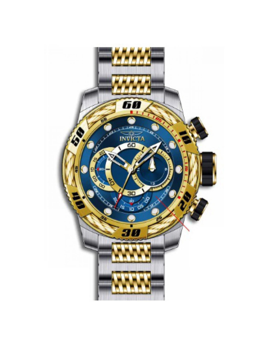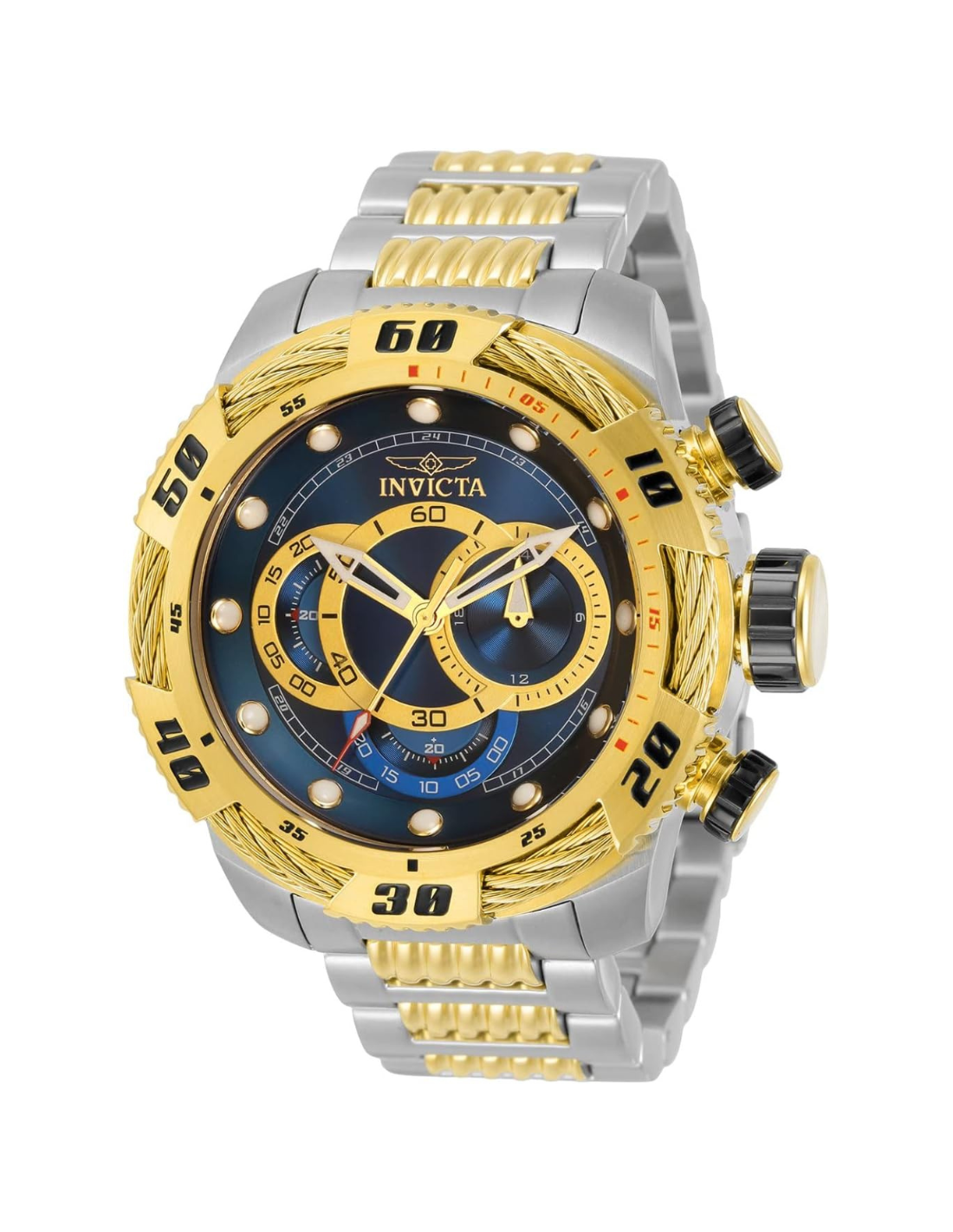 - Caja de acero inoxidable de 1.969 in de diámetro x 0.531 in de grosor; esfera azul y dorada