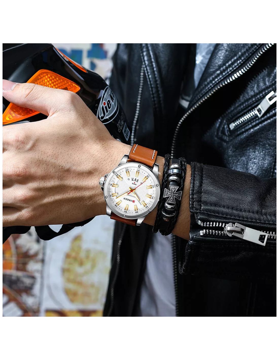 RELOJ CURREN 8376 DE CUARZO ELEGANTE CORREA CAFÉ