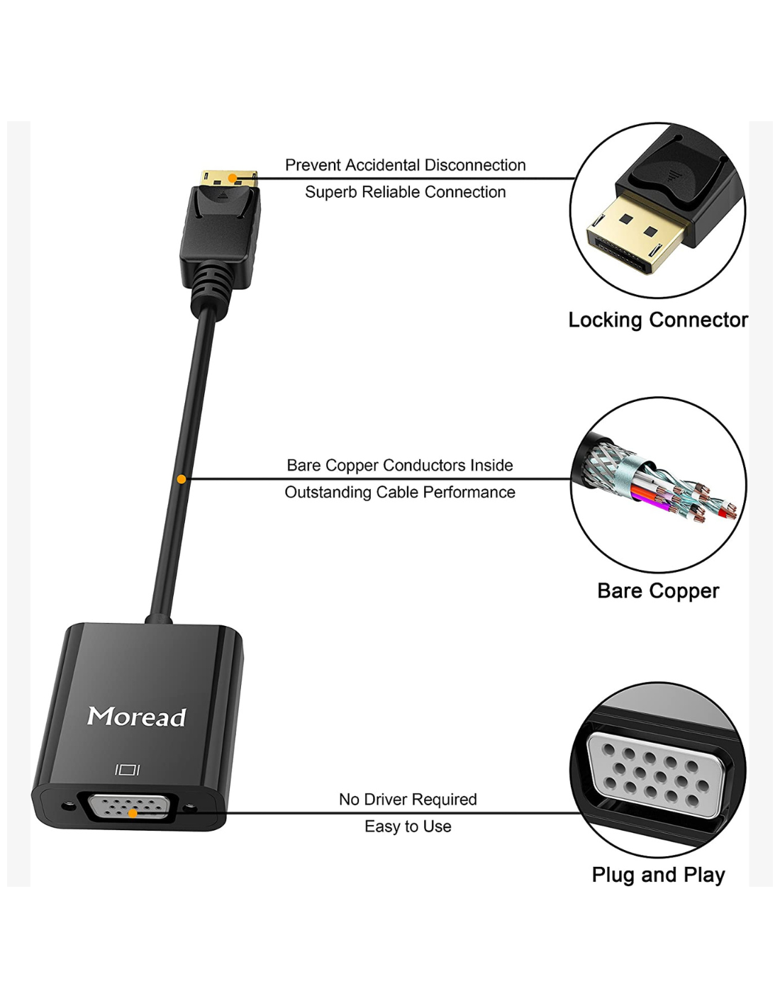 * Diseño compacto: Este adaptador de puerto de pantalla a VGA conecta una computadora portátil o de sobremesa con una pantalla, proyector o HDTV con salida de VGA. Puedes llevarlo fácilmente en tu bolso o en un bolsillo para hacer presentaciones de negocios o para extender tu espacio de trabajo y aumentar tu productividad. Requiere un cable VGA (se vende por separado).