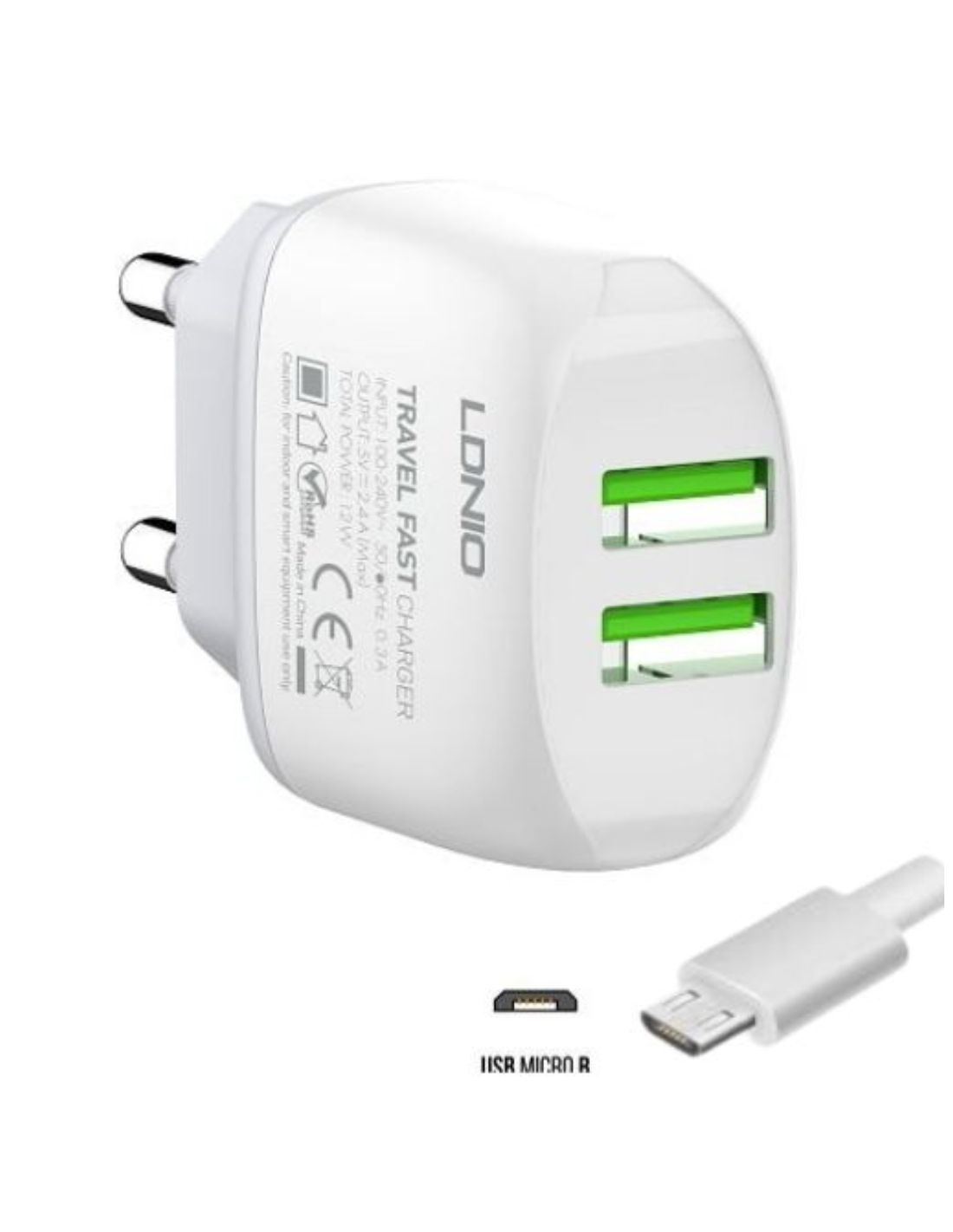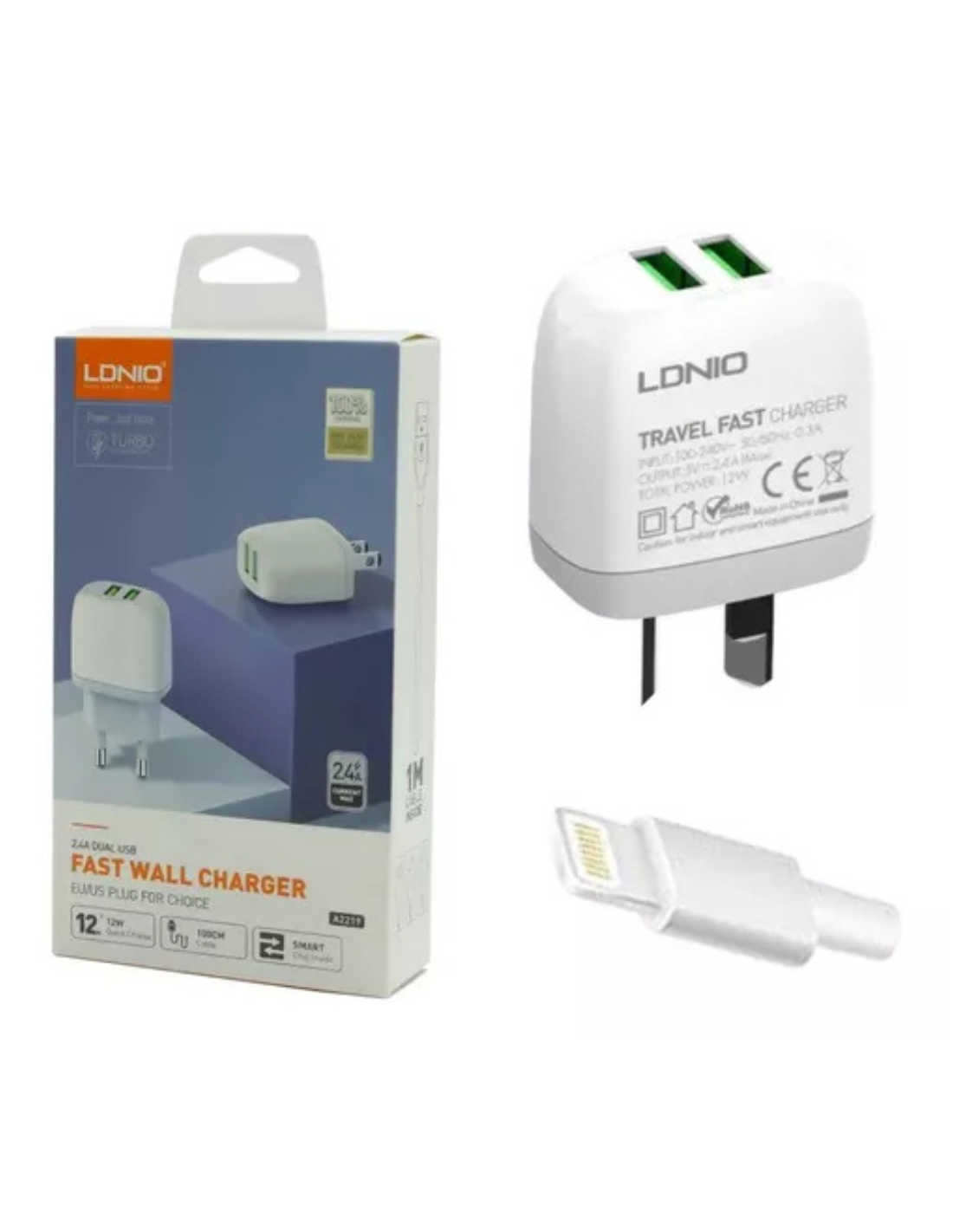 Este cargador tiene gran potencia y salida, con un diseño ergonómico tiene 2 puertos USB, con chip inteligente seguro y eficiente, le da a tu dispositivo la mayor carga posible en poco tiempo, incluye cable tipo Lightning, Micro USB (V8) o Tipo C.