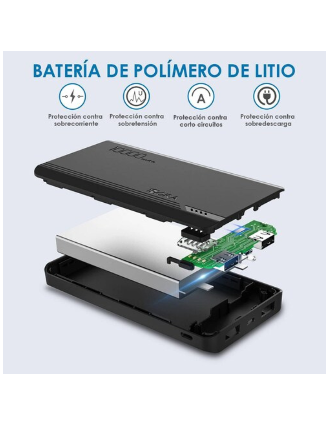 Batería de polímero de iones de litio, alta seguridad y confianza en la carga. Proporciona protección contra cortocircuitos de energía, protección contra sobre corriente, protección contra sobretensión y sobrecalentamiento para garantizar la seguridad de carga.