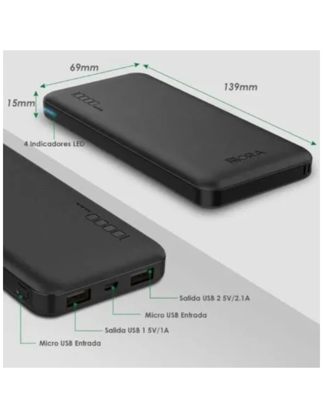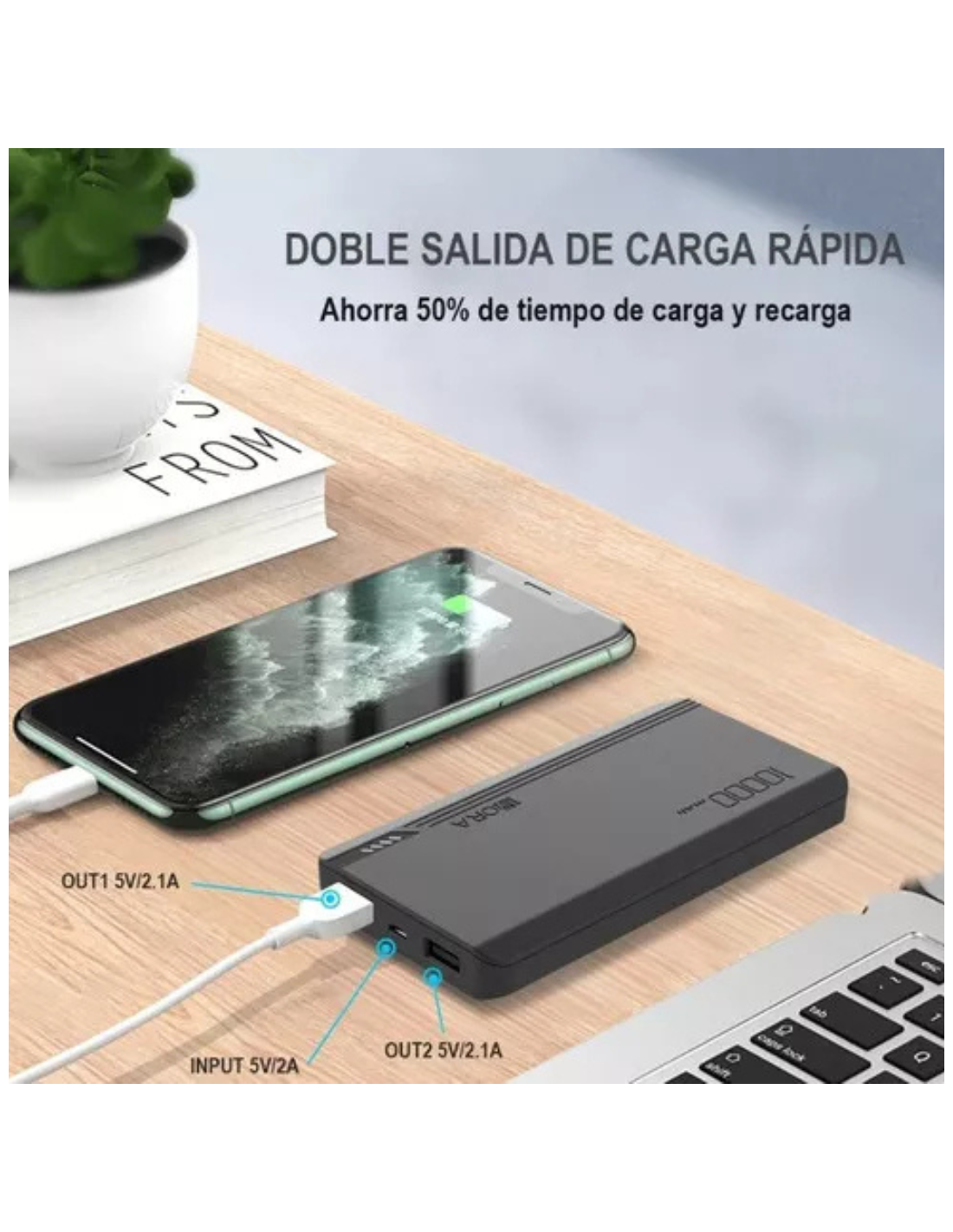 KIT - POWER BANK 10000 mAh + 2 CABLE CONVERTIDOR 5V A 12V GRATIS