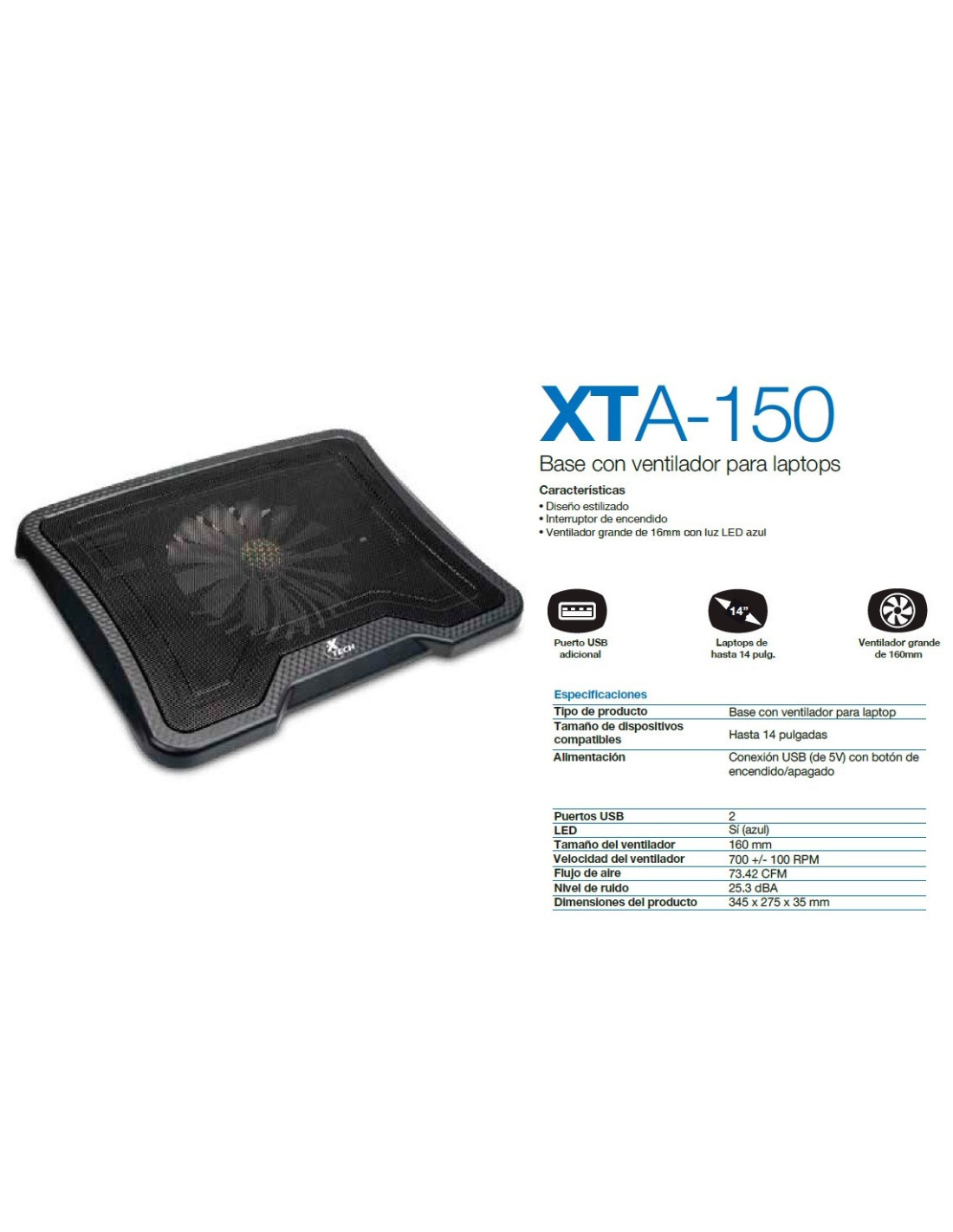 · Diámetro: gran ventilador de 160 mm (16 cm).