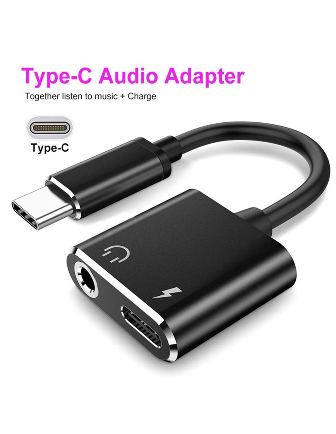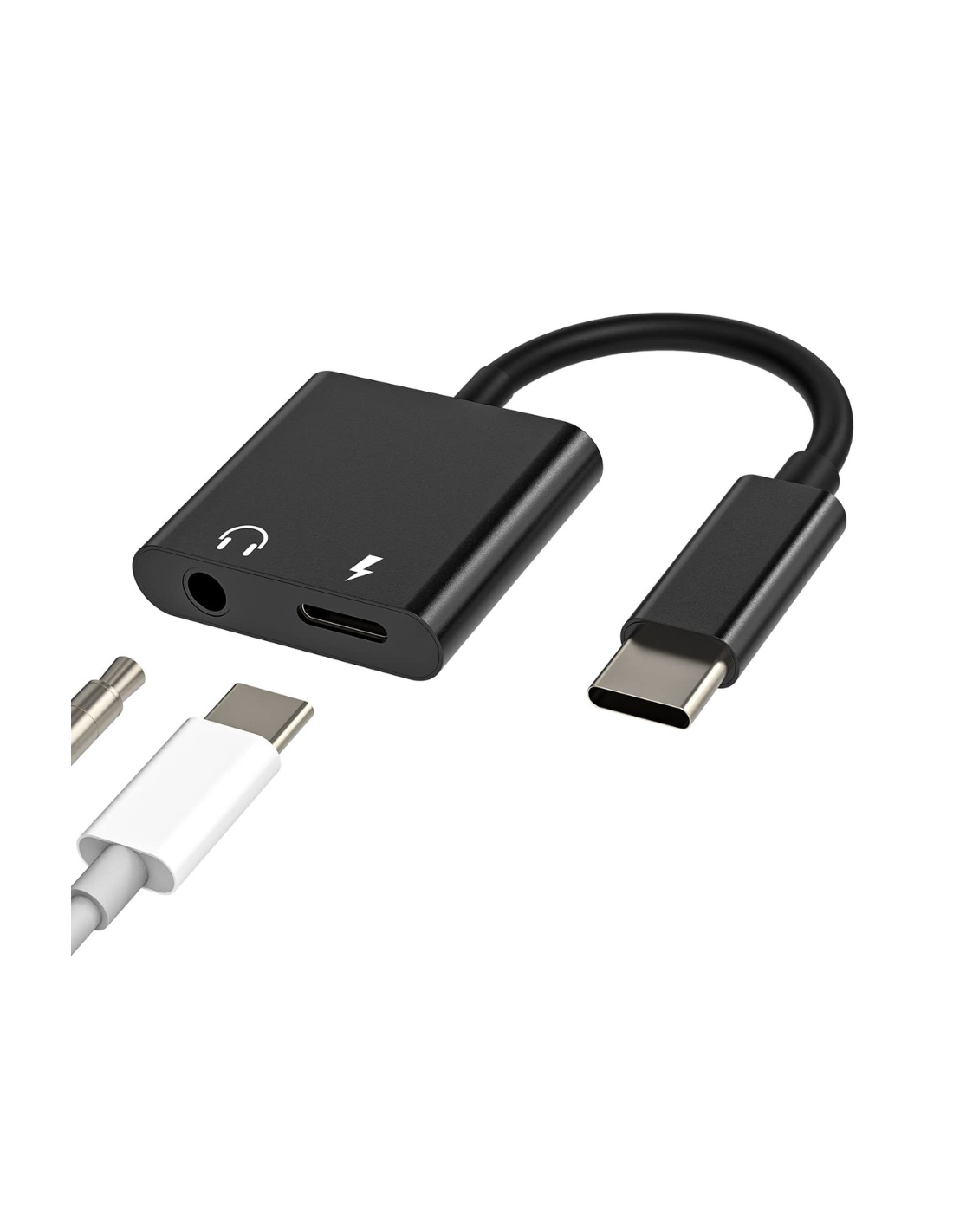 Un adaptador 2 en 1 tipo C macho → tipo C + auxiliar hembra es un pequeño accesorio que se conecta a un dispositivo con puerto USB‑C (celular, tablet, laptop, etc.) y permite dos cosas al mismo tiempo: