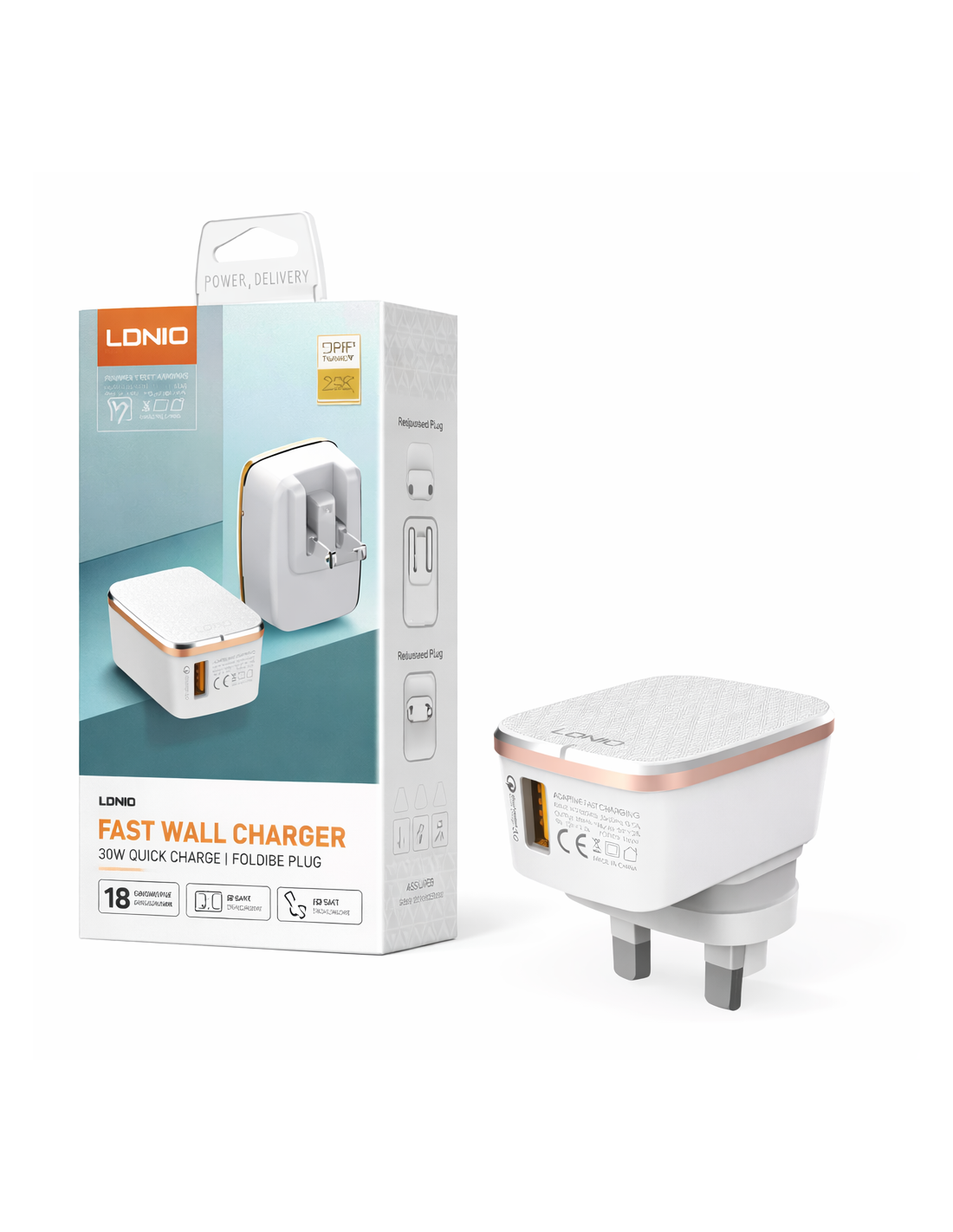 El LDNIO A1204Q es un cargador de pared de carga rápida diseñado para ofrecer energía eficiente y segura en el día a día. Gracias a su tecnología Quick Charge 3.0 y potencia de 18W, permite cargar smartphones y otros dispositivos compatibles hasta varias veces más rápido que un cargador convencional.
