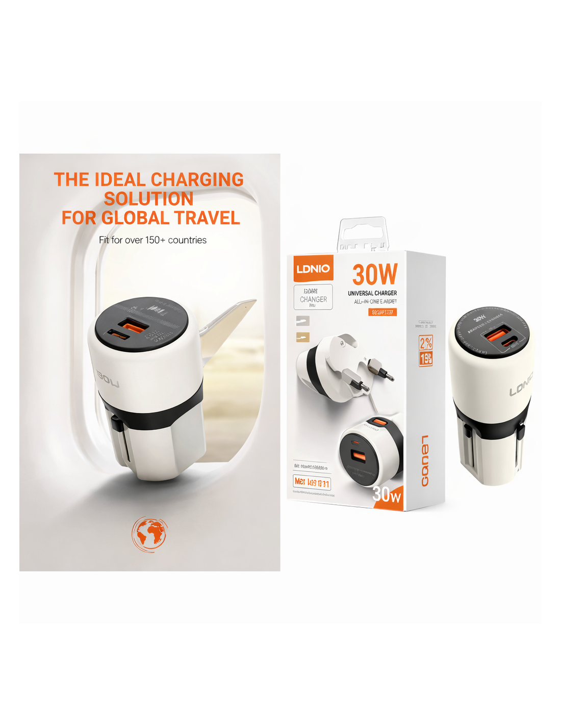 El LDNIO Q2319 GaN 30W es un cargador universal de alto rendimiento diseñado para usuarios que necesitan carga rápida, portátil y compatible con viajes internacionales. Gracias a su tecnología GaN (Nitruro de Galio), ofrece mayor eficiencia energética, menor calentamiento y un tamaño más compacto que los cargadores tradicionales.