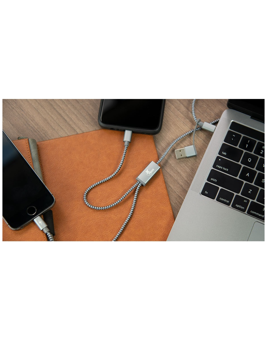 - Práctico y versátil cable 5 en 1 para carga de múltiples dispositivos.