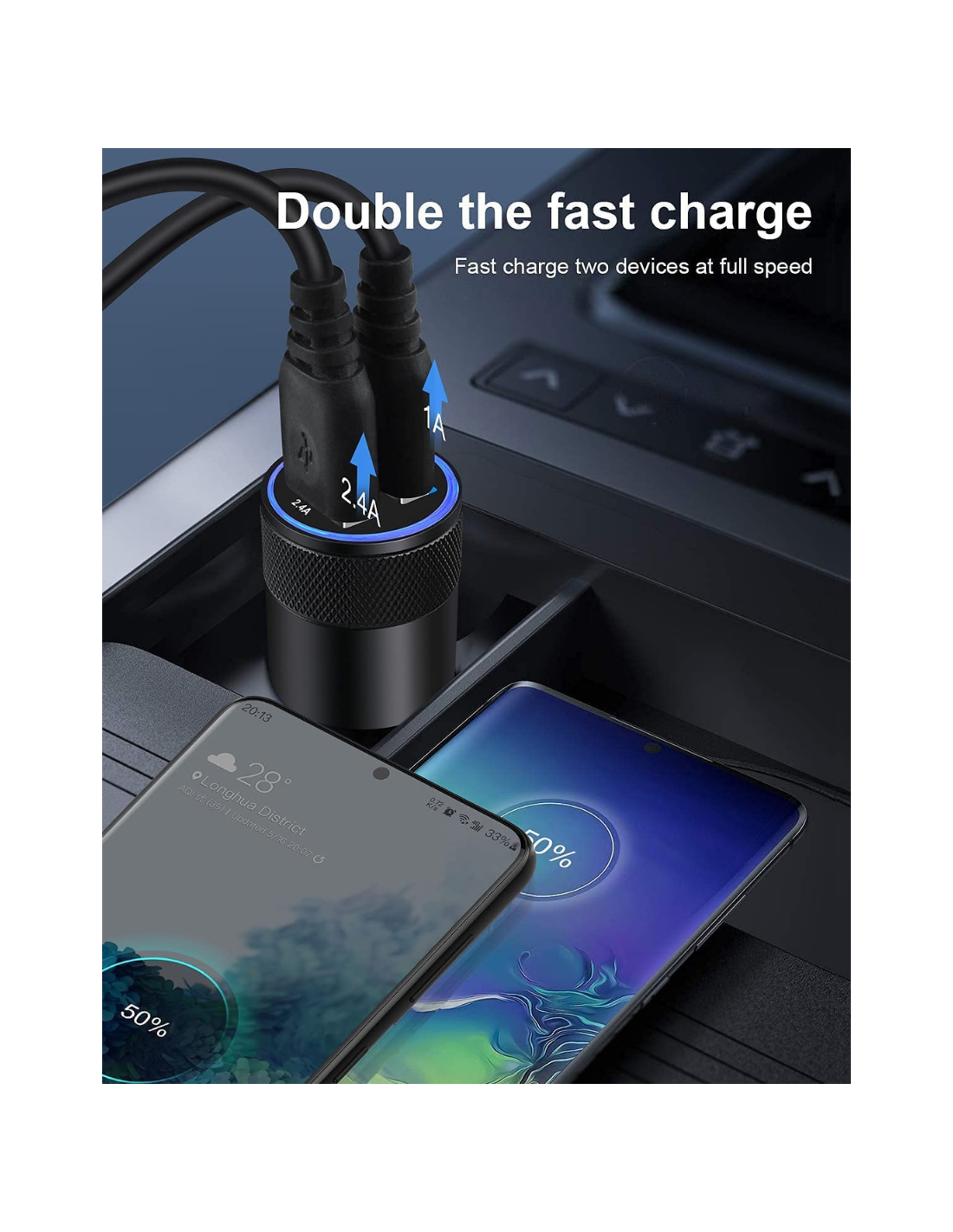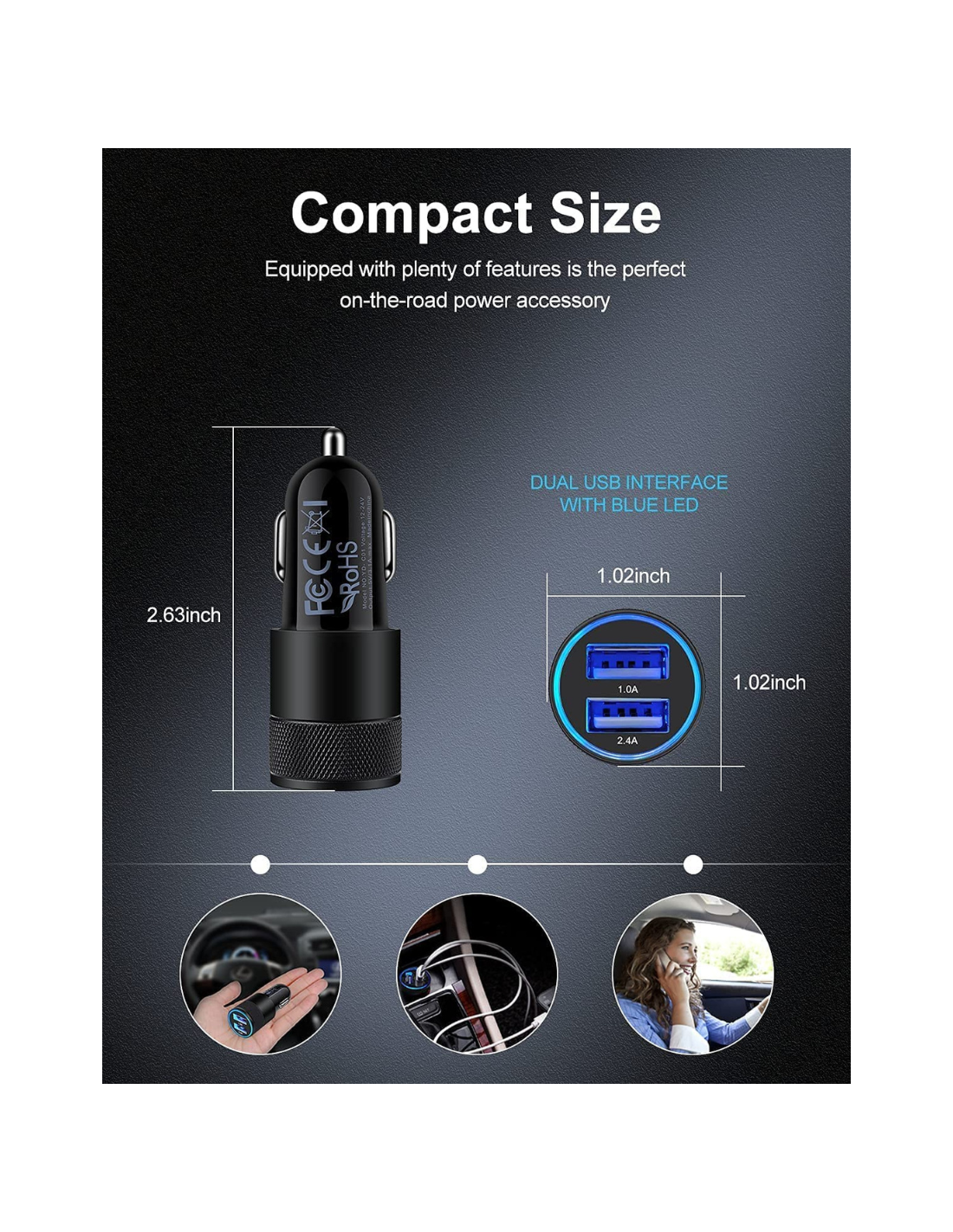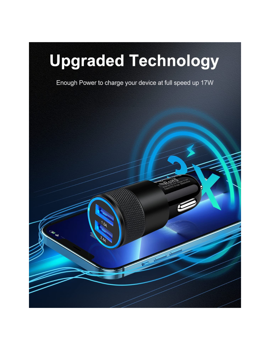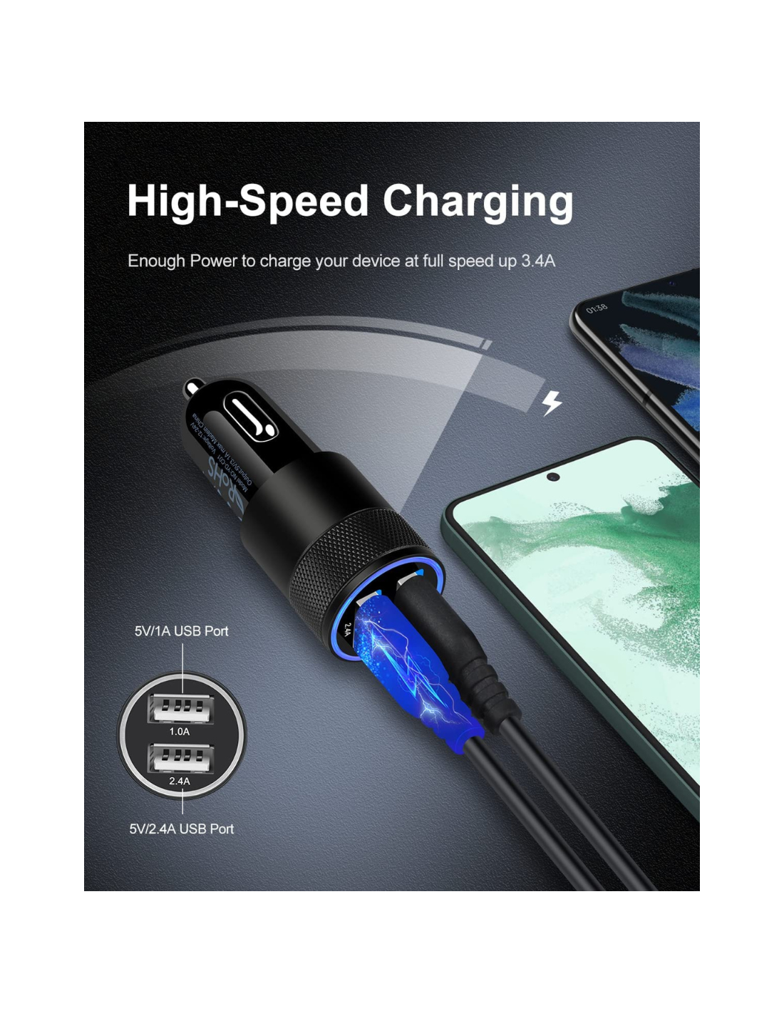 * Diseño inteligente de doble puerto USB: identifica de forma inteligente tu dispositivo para una carga segura de dispositivos duales a toda velocidad simultáneamente, (salida: DC5V-3.4A (máximo), salida 1: 5.0V/1A, salida 2: 5.0V/2.4A) se adapta perfectamente al enchufe del cargador USB del encendedor del coche. Los mejores dispositivos de coche multipuerto USB de tecnología genial para ti o compartir el tiempo de carga con un amigo. Nota: este es un cargador de coche con puerto USB-A dual, pero no un cargador de encendedor PD USB-C