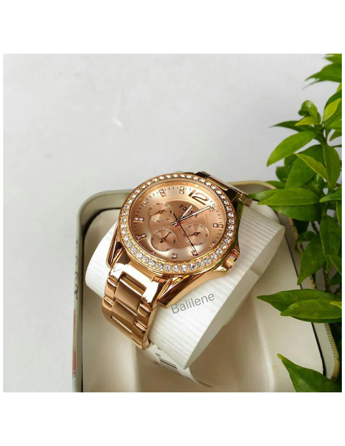 - Color de la esfera: Tono oro rosa, con detalles que pueden incluir cristales decorativos alrededor del bisel, dependiendo del modelo.