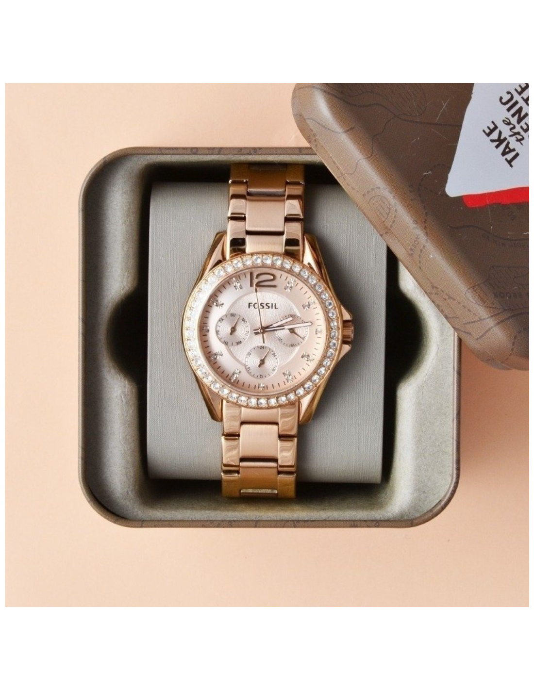 El Fossil Riley ES2811 es un reloj multifuncional de mujer, elegante y moderno. Con su diseño en acero inoxidable y detalles en oro rosa, ofrece una combinación de estilo, durabilidad y funcionalidad. Es ideal para ocasiones tanto casuales como más formales.