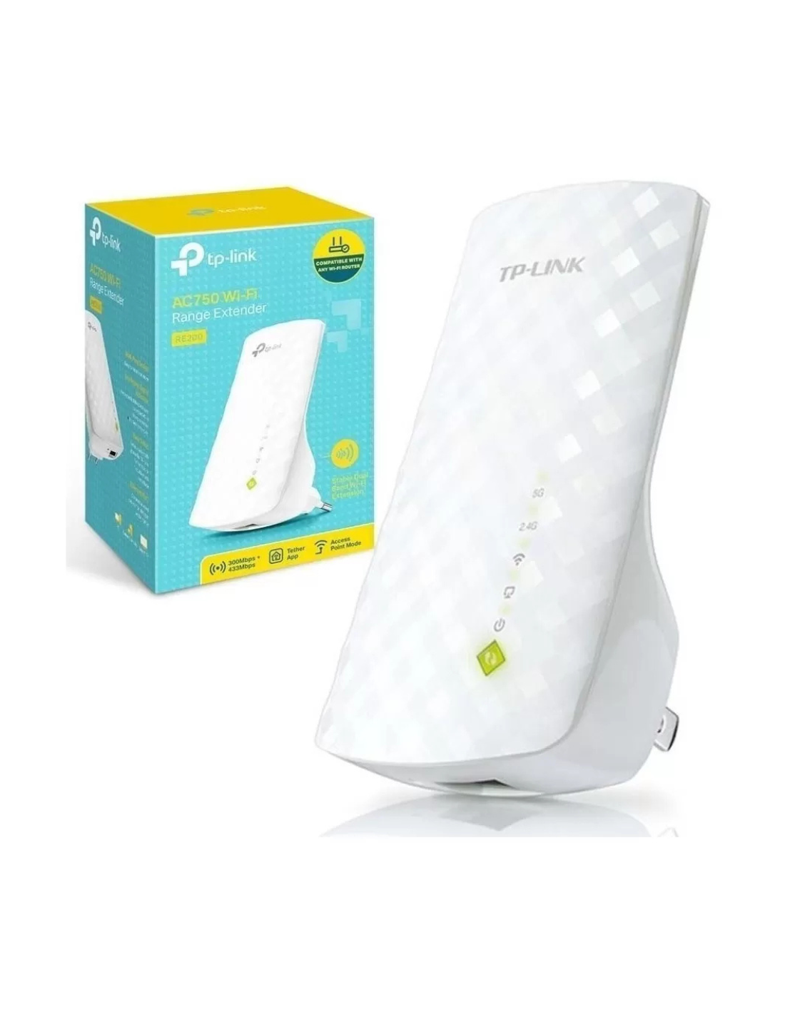 TPLINKExtensor de red inalámbrica TP-Link RE200 AC750, diseñado para ampliar la cobertura WiFi en zonas donde la señal es débil o inestable. Ofrece una velocidad combinada de hasta 750 Mbps, ideal para mejorar la conexión en el hogar u oficina y lograr una navegación más fluida, mejor alcance y mayor estabilidad en múltiples dispositivos.