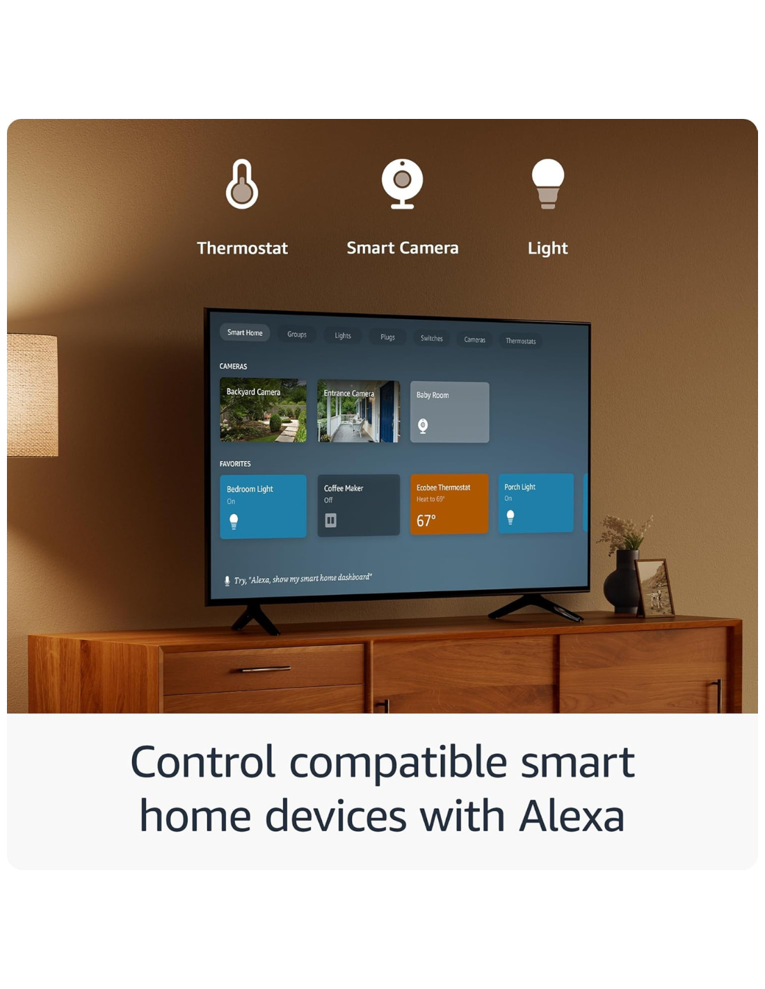 Incluye un mando a distancia que integra micrófono y botón para Alexa, lo que permite usar comandos de voz para buscar contenido, abrir apps o controlar dispositivos domésticos compatibles.