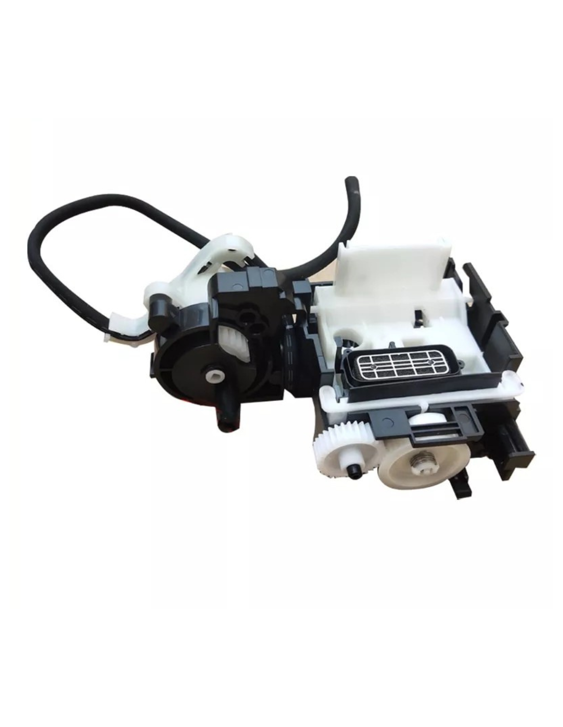 · La bomba de succión es un componente interno del sistema de tinta de la impresora. Su función principal es generar succión (vacío parcial) para mover la tinta desde los tanques hacia el cabezal de impresión, o para retirar tinta residual o aire dentro de los conductos.